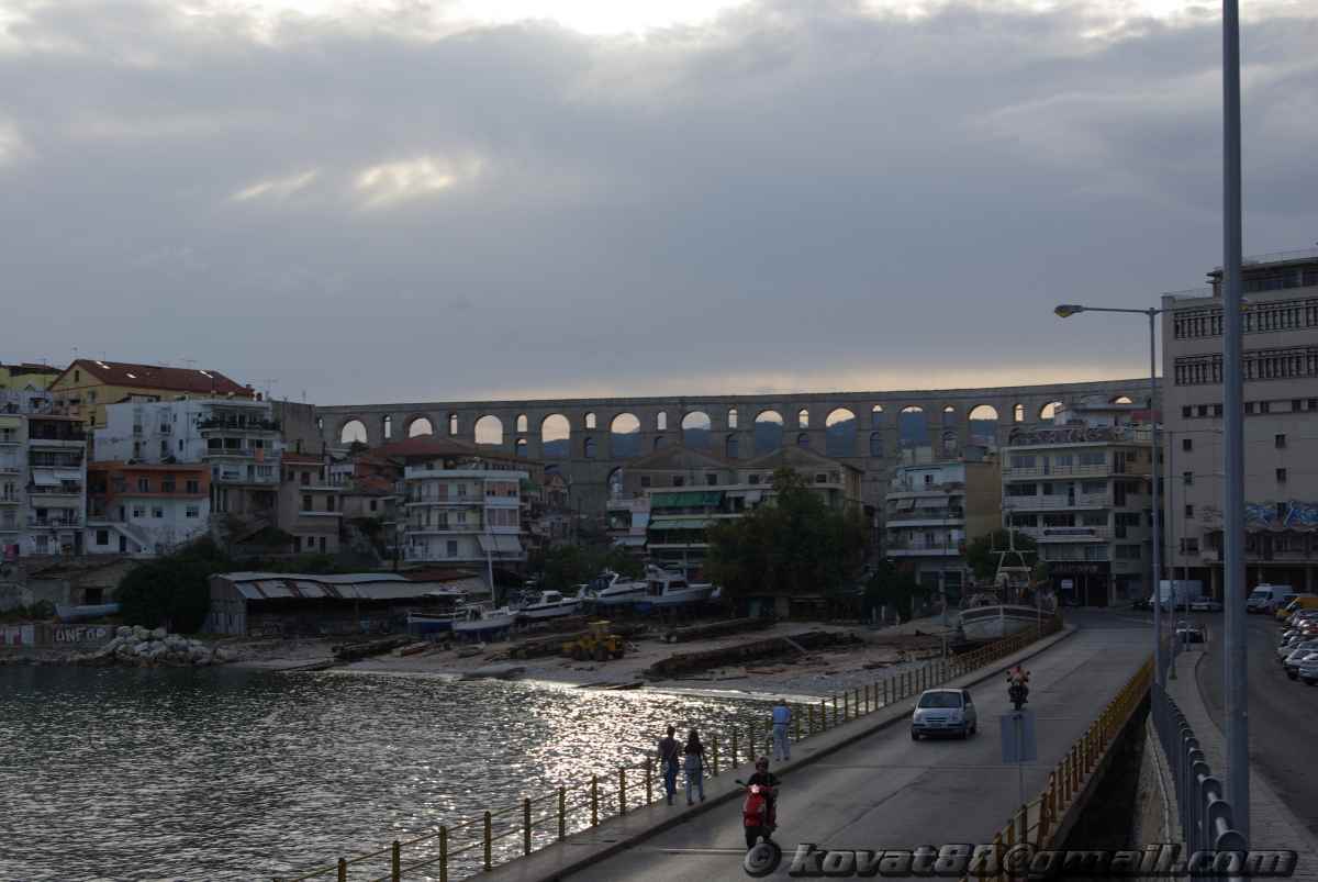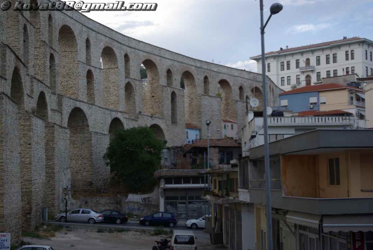 Kavala városát kettészeli egy ókori vízvezeték- Annyira a mai élet részévé vált, hogy egyes nyílásaiban mai épület - kis ház - is épült.