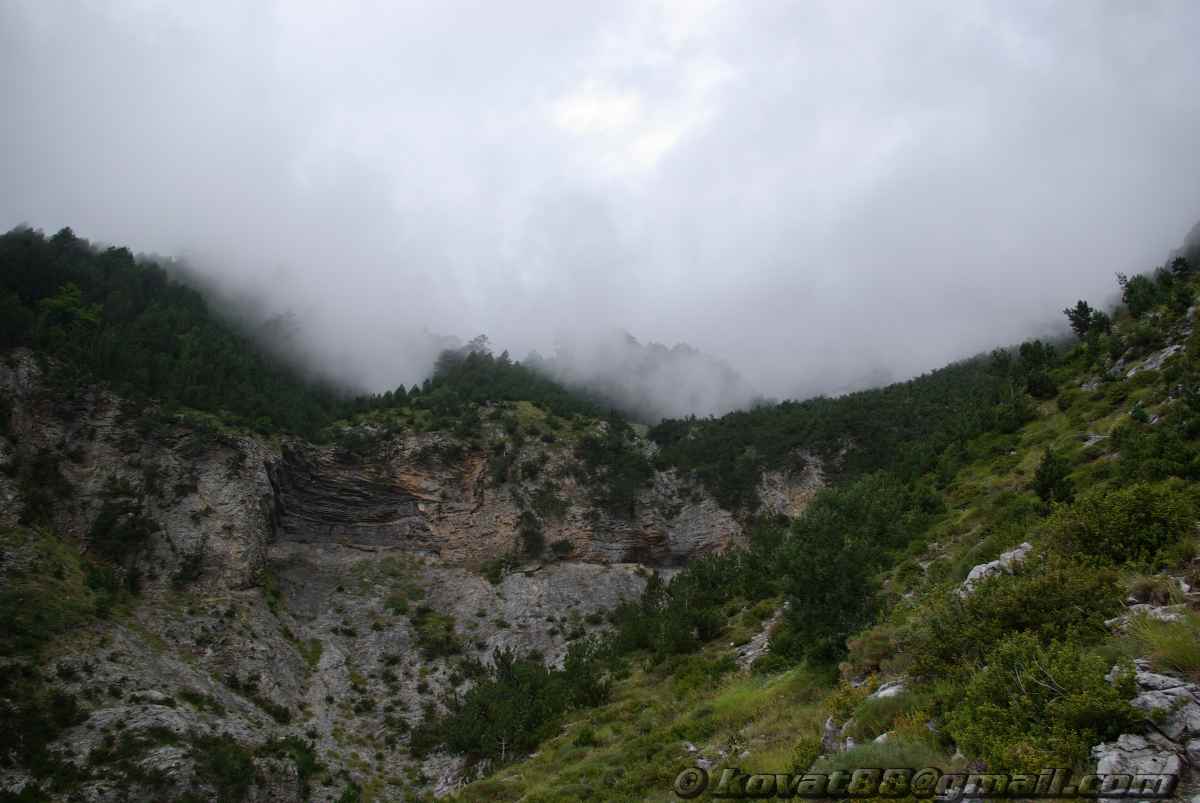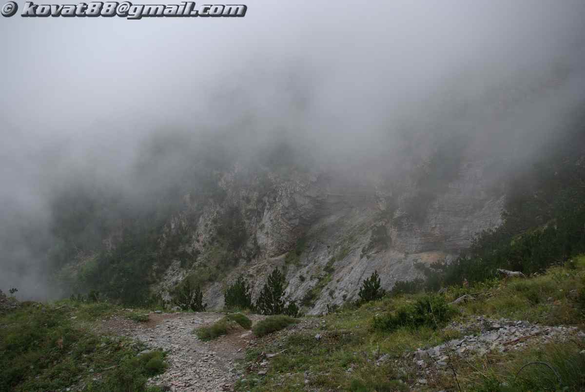 A tengerpartról kb. 1000 m magasra mentünk fel autóval. A szerpentin jól járható, sima "mezei" autóval mentünk fel a parkolóba. Innen gyalogoltunk fel a menedékházba, ami 2000 m felett (GPS szerint 2078 m-en - a lenti képen még csak 2002 m-en voltunk, innen még felfelé volt az út) volt. Az utolsó métereket már egy felhőben, esőben tettük meg. Idáig mindenféle extra felszerelés, hegymászótudás, hasonló huncutságok nélkül fel lehet jutni biztonsággal. Bakancs, kényelmes túracipő és a végére esőkabát azért ajánlott. Tiszta időben innen még lehet feljebb menni előképzettség nélkül, de már óvatosabban, nagyobb belátással. Nekünk a menedékház volt a határunk, innen visszafordultunk. 4 óra fel, 3 óra le volt az út.