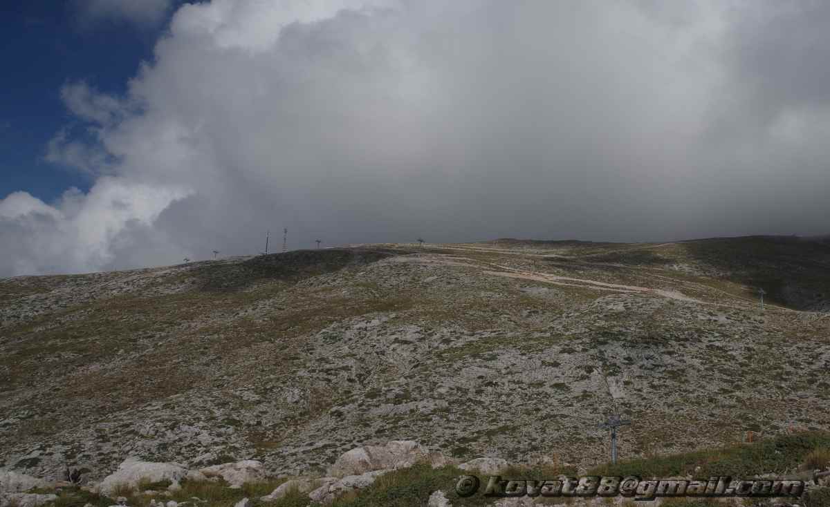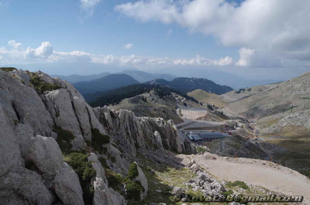 Delphoi meglátogatása után, a szállás felé visszaúton felmentünk a Parnassos hegyre (írói vénáim nem lettek tőle). Azért kicsit meglepő volt, hogy egy komoly sícentrumot találtunk fenn. Persze csak az előítéletek/megszokások miatt volt furcsa, mi főleg nyaralni megyünk Görögországba, és ritkán megyünk fel magas hegyekre. A sziklaképződmények, színek, felhők, a pillanatonként és hirtelen változó időjárás nagyon érdekes volt.