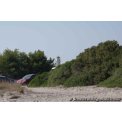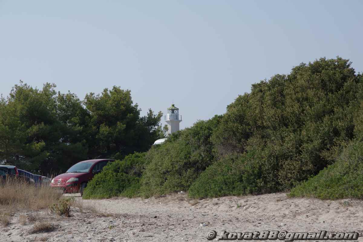 Kassandra egyik legismertebb strandja. Háttérben egy világítótorony. Mivel nagyon ismert strand, van is sok látogatója, de mivel elég nagy, nem egymás nyakában ülnek az emberek. Telepített napernyő sem nagyon van, a homokos part pedig elég nagy és érdekes a kiszögellés miatt. Fürödni, pihenni jól lehet itt.
