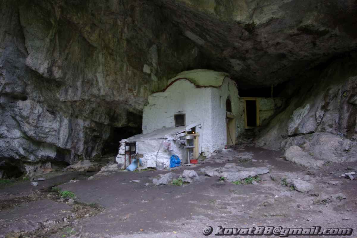 Az Olympus hegy oldalában, a Szent Dionysos kolostortól nem messze található ez a hely. Egy természetes barlang, amiben egy forrás tör utat, e köré építettek egy kunyhót (házat, lakot) egy szerzetesnek. Érdekes látvány a barlangban álló házikó.