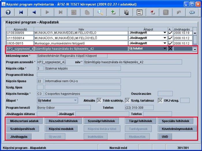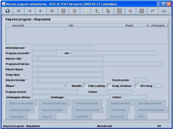 Hasonlóan a modulokhoz, itt is a képzési program alapadataivl kell kezdeni egy új program rögzítését.