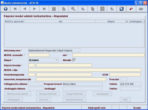 A modulok felvitele több részre osztható feladat. A leírás a folyamat szerint vezet végig, az egyes részterületek az eljárás sorrendjében követik egymást.
