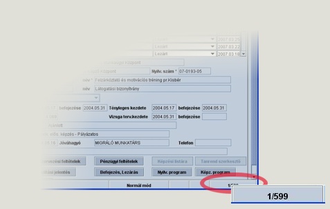 A minta szerint ez a keresés 599 találatot eredményezett, és ebből az első rekordon állunk.