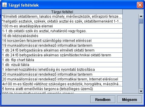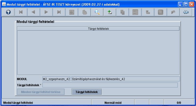 A tárgyi feltételek megadásához a modul adatainak bemutatására szolgáló ablakban a