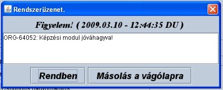 gombra kattintás után egy rendszerüzenetet fogsz látni. Ha minden rendben volt, nem hiányoznak szükséges adatok, a rendszerüzenet arról tájékoztat, hogy a modul jóváhagyása megtörtént.